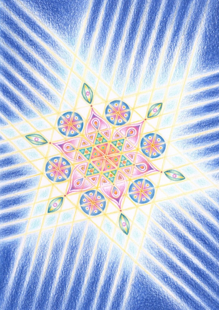 Hand-drawn in water colour pencil as cards prints and one-off commissions. I find drawing Mandalas very restorative and relaxing. The word comes from an ancient Sanscrit word meaning circle. It’s a very natural form for us to explore, there being examples of mandala creation all over the world going back thousands of years.